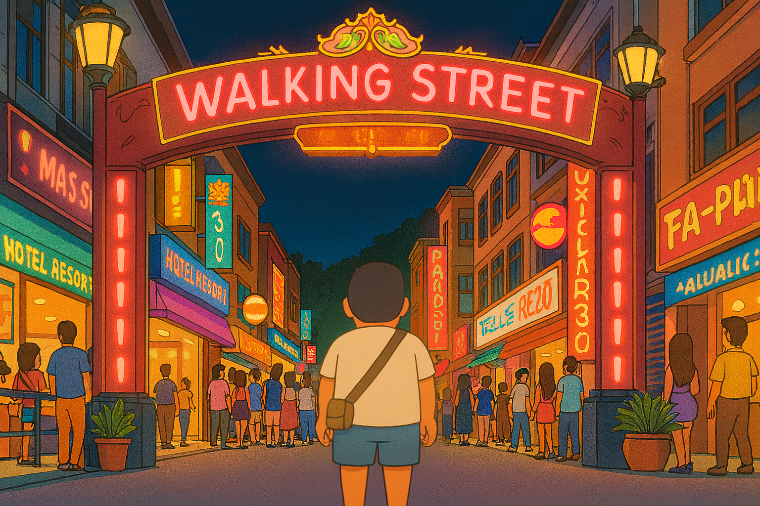 ウォーキングストリートは派手や。けど、派手な景色の中での「静けさ」ってのが好きや。人ごみのざわめき、遠くで聞こえるカラオケの音、路地から漏れる笑い声。その騒音の重なりが、逆にわしの頭の中を整理してくれるんや。